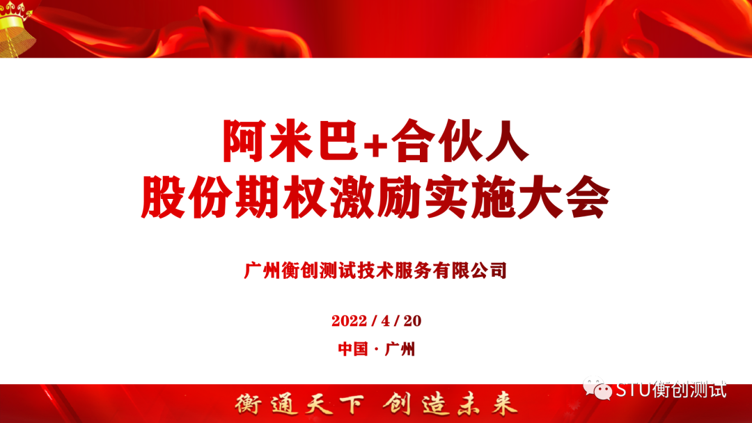 熱烈祝賀STU衡創(chuàng)測(cè)試“阿米巴+合伙人股份期權(quán)激勵(lì)實(shí)施大會(huì)”圓滿(mǎn)閉幕。 2022年4月20日(農(nóng)歷三月二...