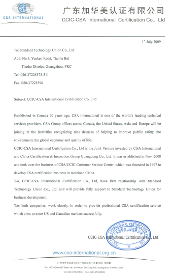 加拿大國(guó)家發(fā)證機(jī)構(gòu)CSA授權(quán)