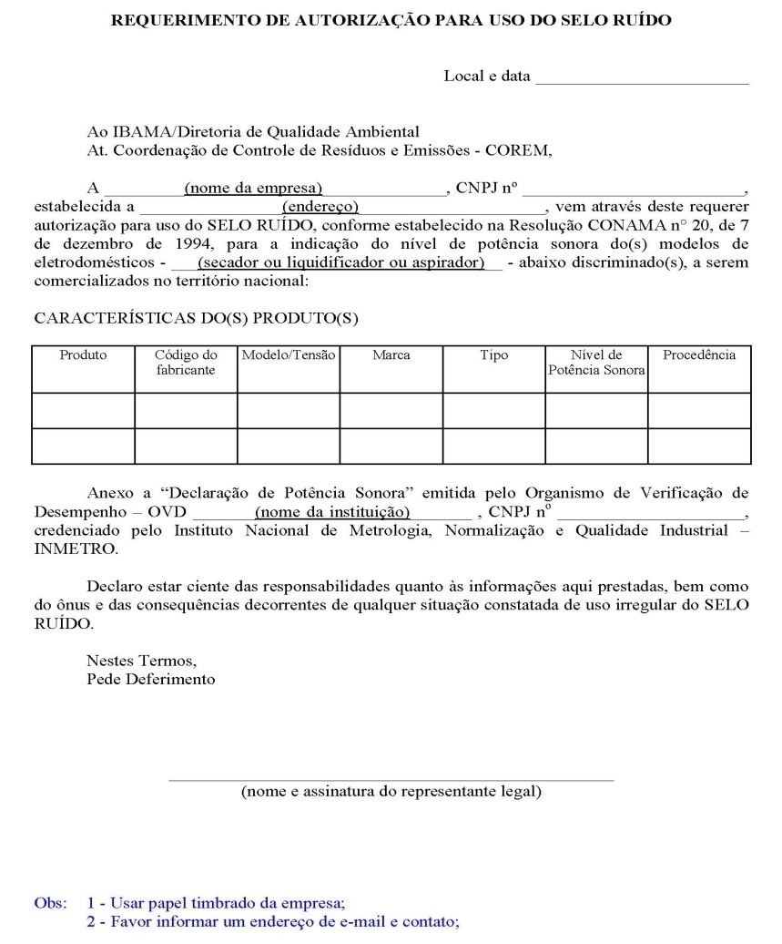 ◆ 向巴西IBAMA申請(qǐng)注冊(cè),要發(fā)送的文件包括:申請(qǐng)表和噪聲合格證書(shū);