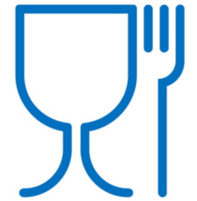 食品接觸材料及制品終產品除應符合上述要求外,還應注明“食品接觸用”“食品包裝用”或類似用語,或加印、加貼調羹筷子標志(具體見下圖 ),有明確食品接觸用途的產品(如筷子、炒鍋等)除外。
